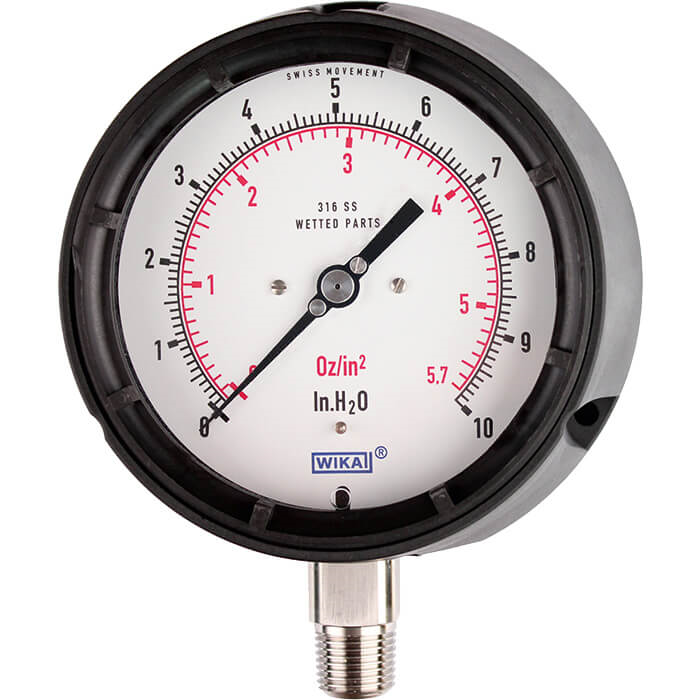 膜盒測量原理尤其適用于低壓條件。增壓時,膜盒元件與入射壓力成比例的膨脹會傳輸至機芯,并會進(jìn)行指示。