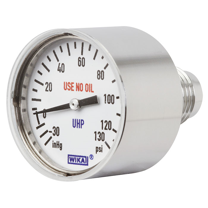 微型膜片壓力表已通過(guò)氦氣泄漏測(cè)試,表殼內(nèi)部進(jìn)行電解拋光,符合純度標(biāo)準(zhǔn)。