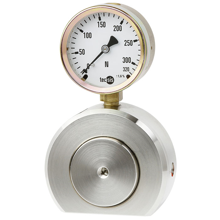 該產(chǎn)品的測(cè)量采用了液壓原理:當(dāng)力作用于活塞時(shí),液壓壓力增大,其液壓壓力可以顯示在與其相連的儀表上,該儀表的刻度可根據(jù)客戶需求定制,如N、kN、kg、t。
